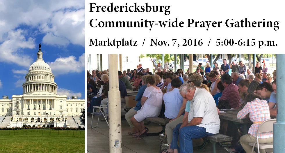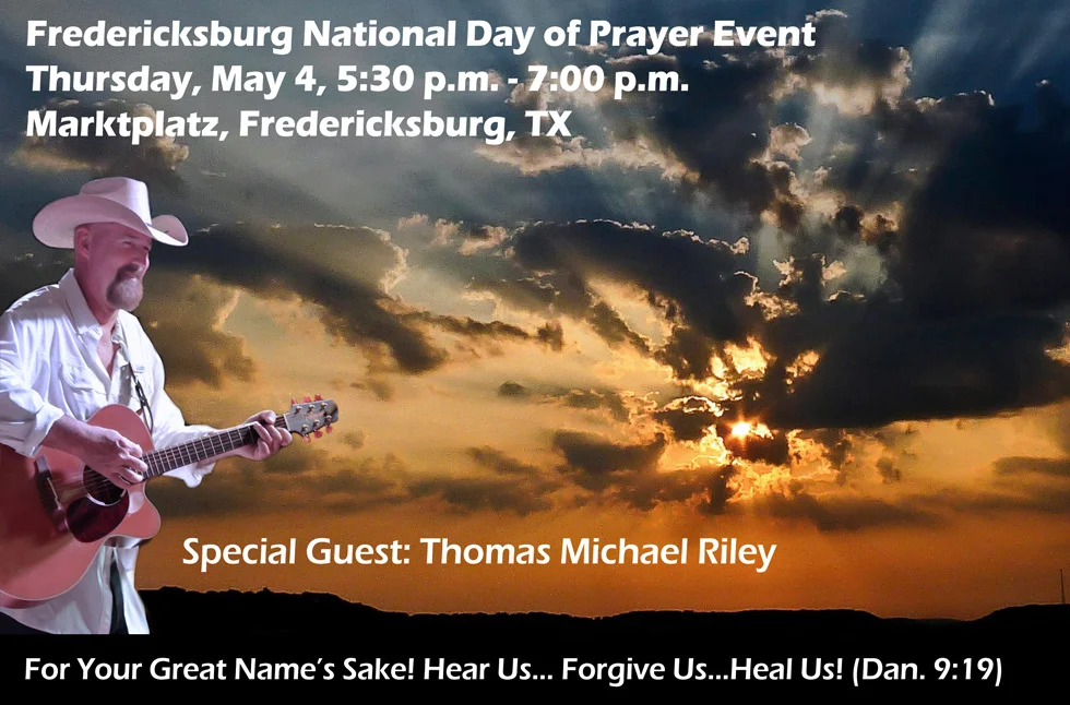 Come to Marktplatz during the late afternoon on May 2 and join with many of your Gillespie County Christian brothers and sisters as they respond faithfully and hopefully to the presidential proclamation encouraging them to pray for our nation.
